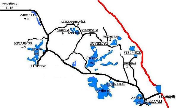 MARŠRUTAS: Zarasai - Rudėnai - Suviekas - Vaidminiai - Kampuolio hidrografinis draustinis - Aleksandravėlė - Degučiai - Kriaunos - Obeliai - Rokiškis - Zarasai